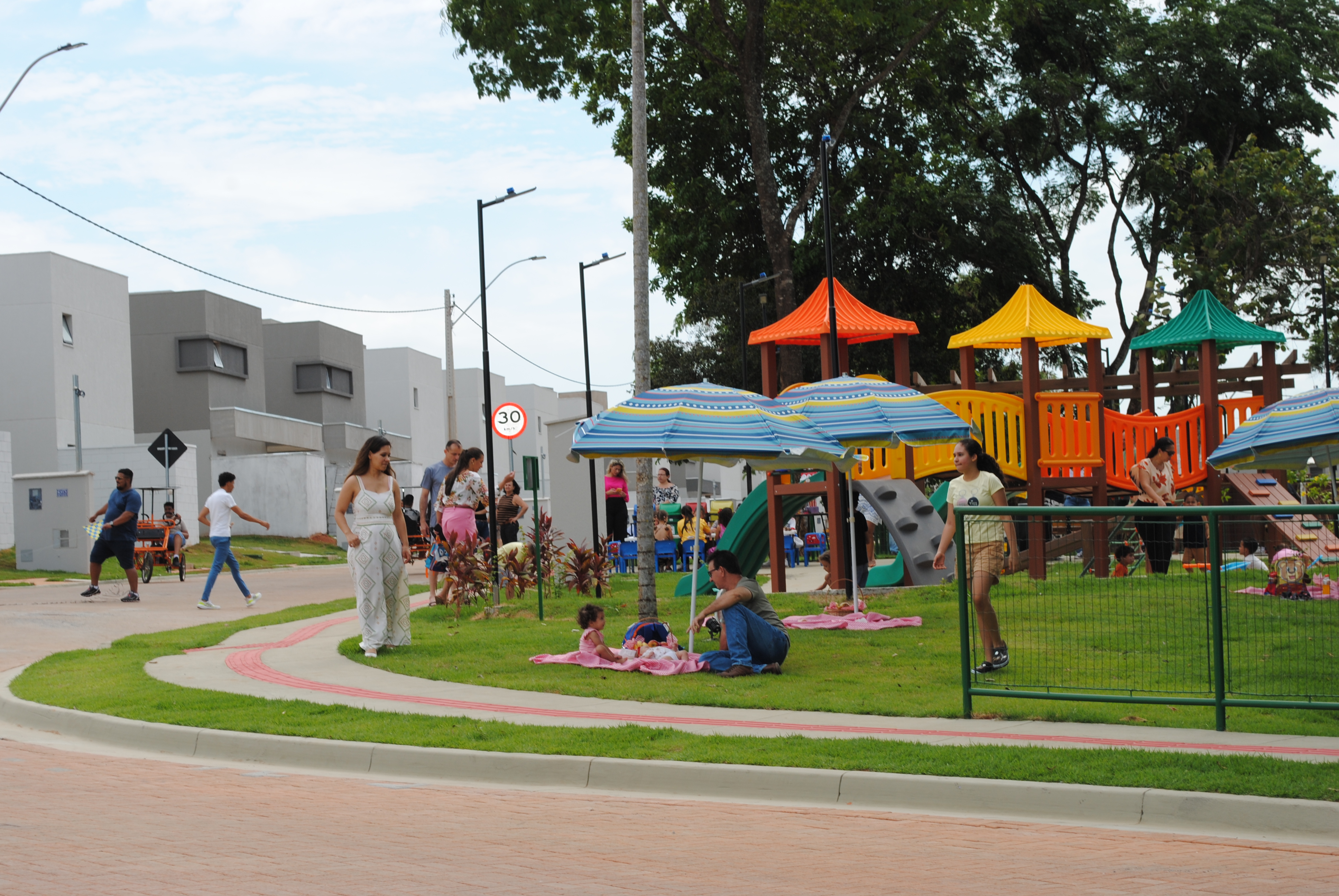 Famílias, futuras moradoras do Jardins Cannes, aproveitaram as áreas de convivência (Foto: Anderson Costa)
