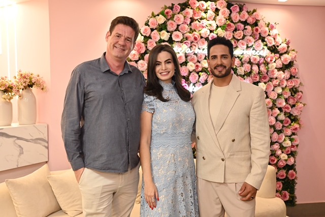 O casal Marcio Pavanelo e Lívia Duarte celebraram o primeiro ano do Dream SPA & Casa de Beleza juntamente com  Johny Cândido, que comemorou 10 anos da JC Comunicação (Foto: Samara Christtiny Estevão)
